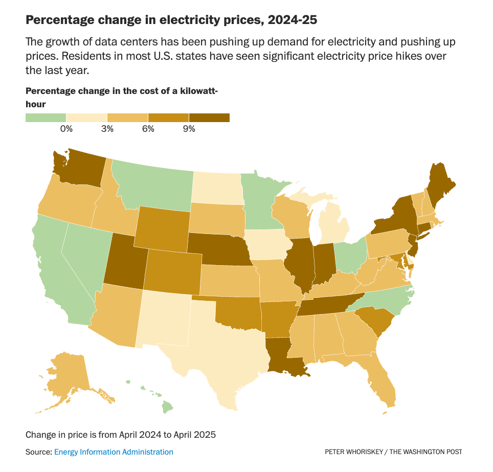 (From “The AI explosion means millions are paying more for electricity” Washington Post, July 2025)