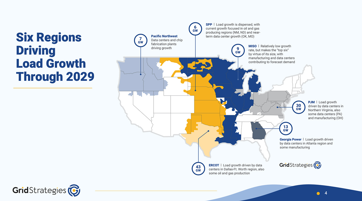 Regional bottlenecks: Growth is concentrated in a few hubs (like Northern Virginia in PJM territory and parts of Texas in ERCOT), creating local vulnerabilities where demand is outpacing infrastructure.