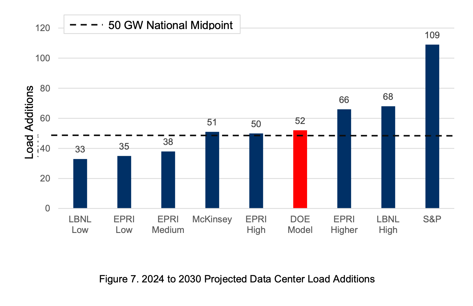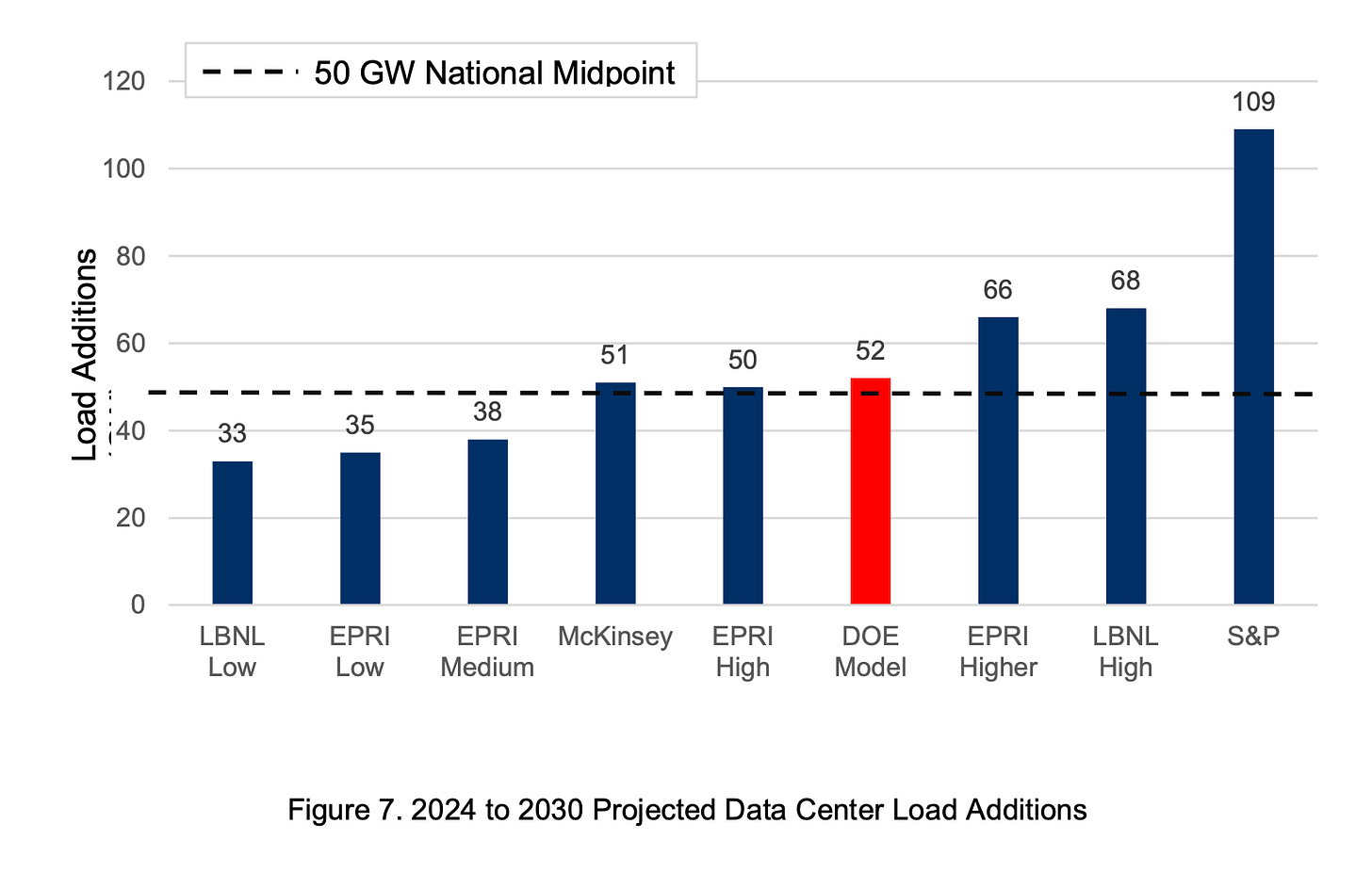 (Estimates for expected power demands vary widely. The DOE took a midpoint of 50GW)