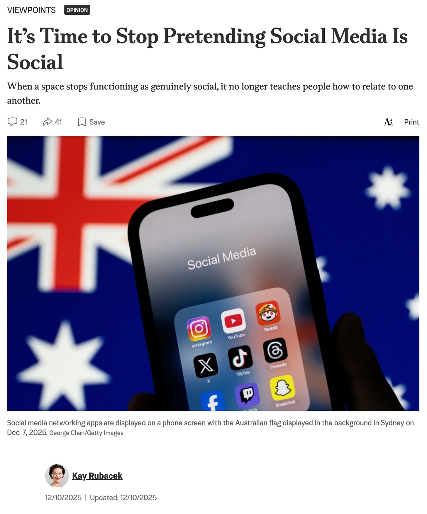 Something important is shifting online, and it’s happening faster than most people realize. Australia just banned social media for teens and a number of other countries are planning to follow suit. More than 40 U.S. states are already suing the major platforms. And everyday users—people like you and me—are quietly changing how we use the internet.
