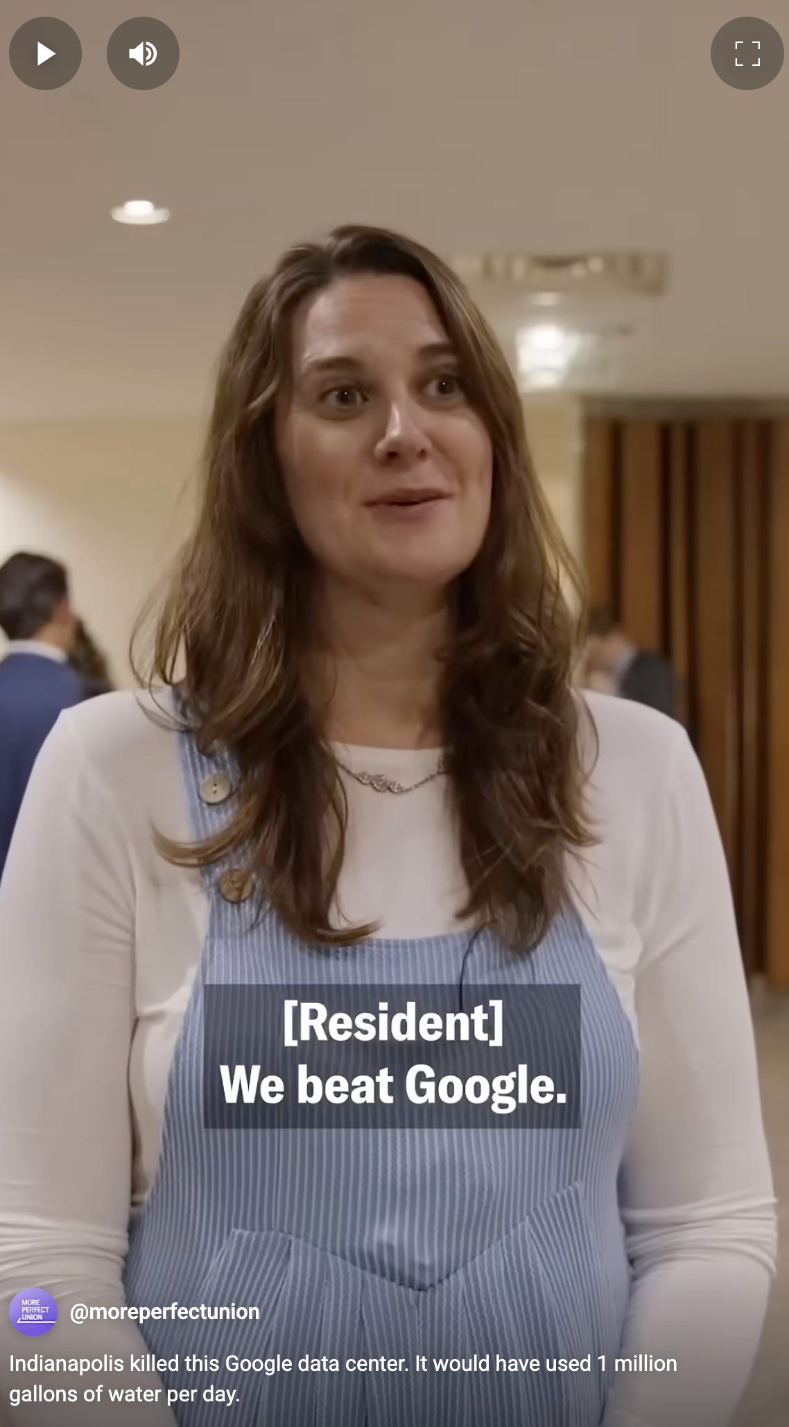 So, I love this story from Franklin Township, Indiana, that just broke, where locals dissolved their differences and worked together to effectively beat a Google data center, which would have used 1 million gallons of local water per day.