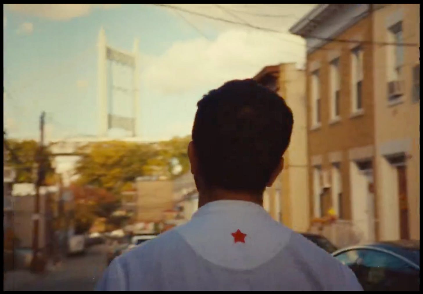 Image: A screenshot from Zohran Mamdani’s main campaign video, which has a 6-second shot that deliberately emphasizes a five-pointed red star—the symbol of socialist ideology for the past century—on the back of Zohran’s white tunic as his stands on a street in New York City.